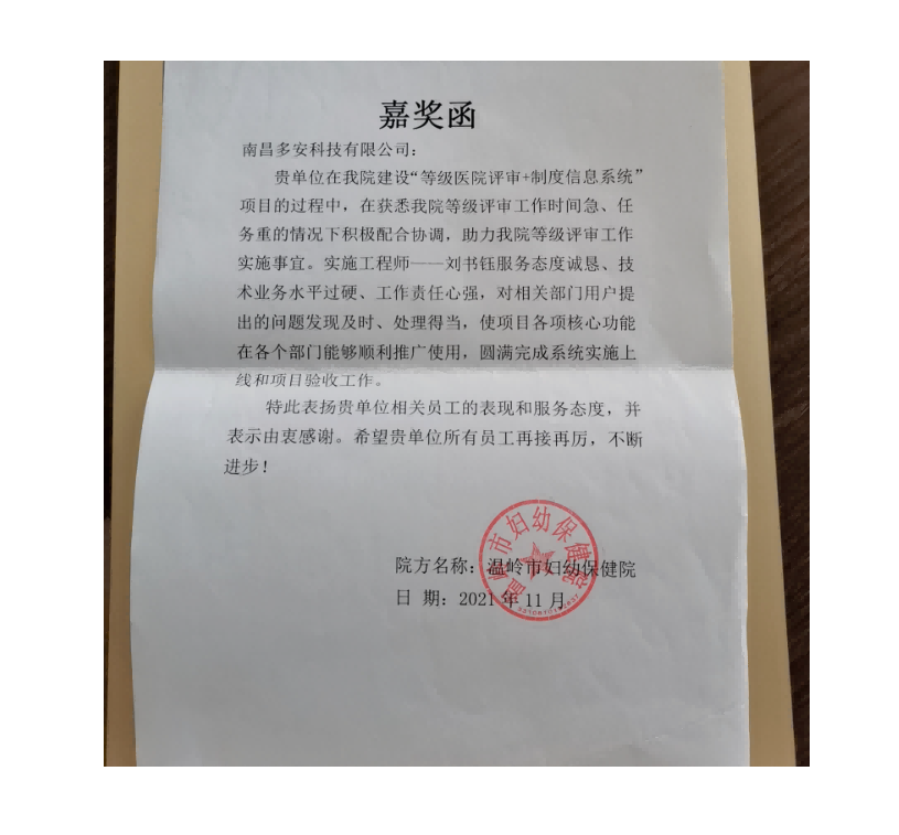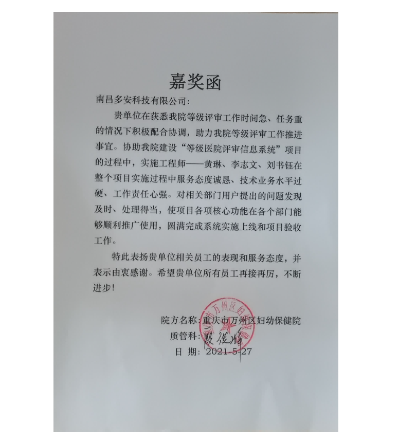 • 助力“二甲復評" 興國縣婦幼保健院上線多安“等級評審一體化管理平臺”