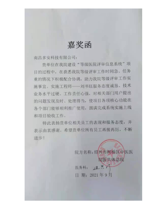 • 浙江省浦江縣中醫醫院上線多安“等級評審一體化平臺”