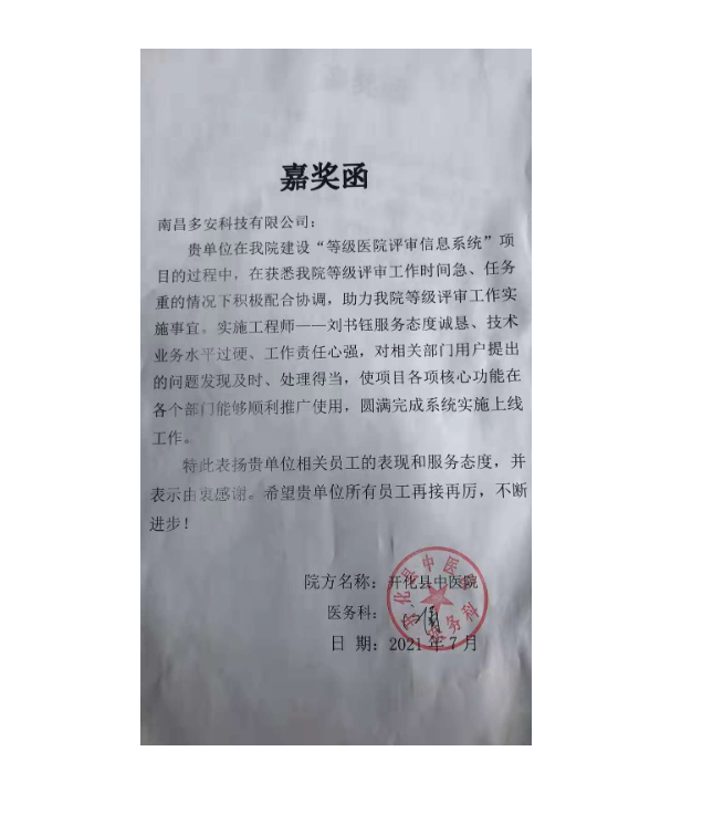 • 合作共贏+1,撫州三院上線多安等級醫院評審系統