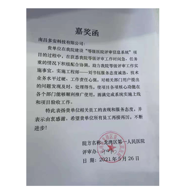 • 創建三級綜合醫院 寧波龍賽醫院上線多安“智慧等級迎評管理系統”
